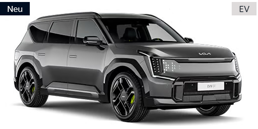 Der Kia EV9 GT ist der bisher leistungsstärkste SUV unserer Marke und definiert, was Elektromobilität heute leisten kann. Mit seiner geballten Kraft von 374 kW (508 PS) und rennsportinspirierter Technik liefert er das Fahrerlebnis eines Sportwagens und doch bleibt er ein echter SUV: groß, komfortabel, alltagstauglich. Ob Solo auf der Überholspur oder mit der ganzen Familie auf großer Fahrt – der EV9 GT bringt Fahrspaß und Funktion perfekt in Einklang.